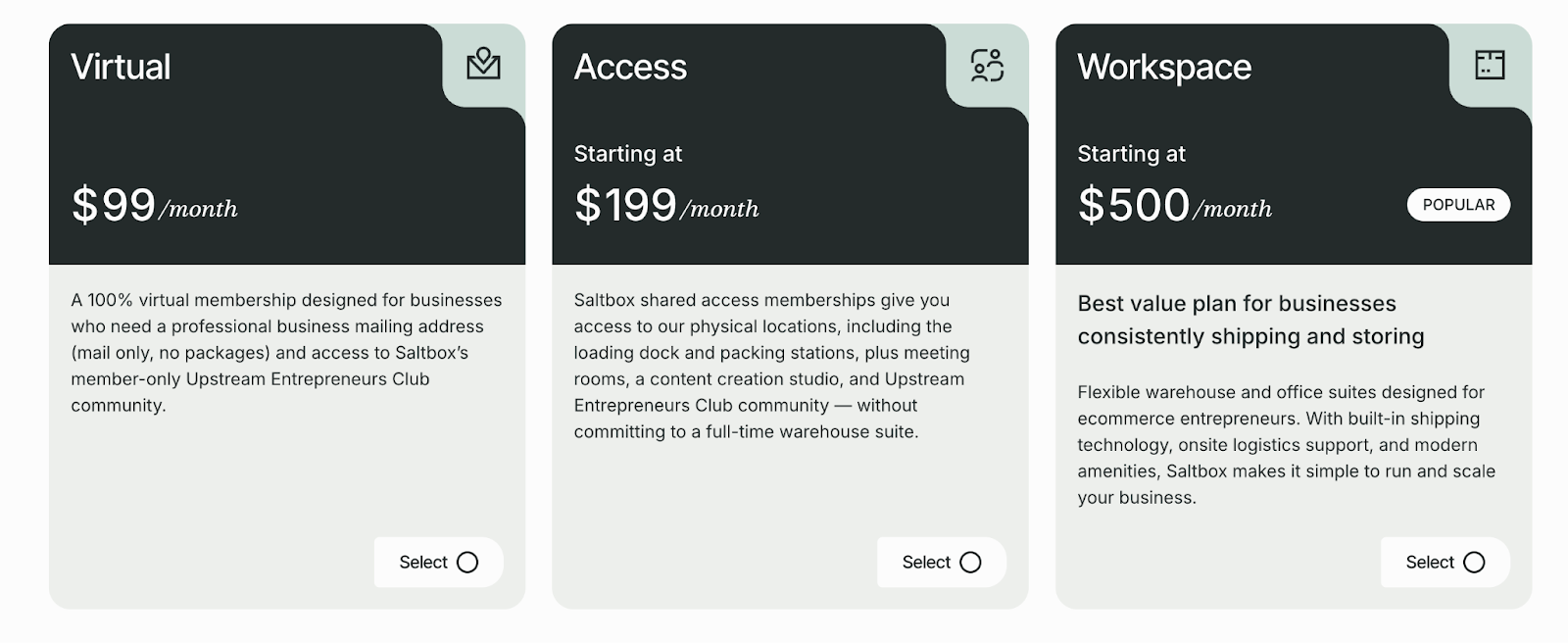 On the other hand, Saltbox, while being more expensive than Cubework, had: