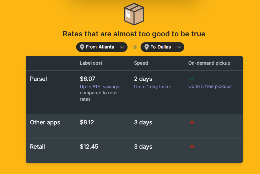 Saltbox members can also unlock exclusive shipping rates with Parsel, which is free for all of our members.