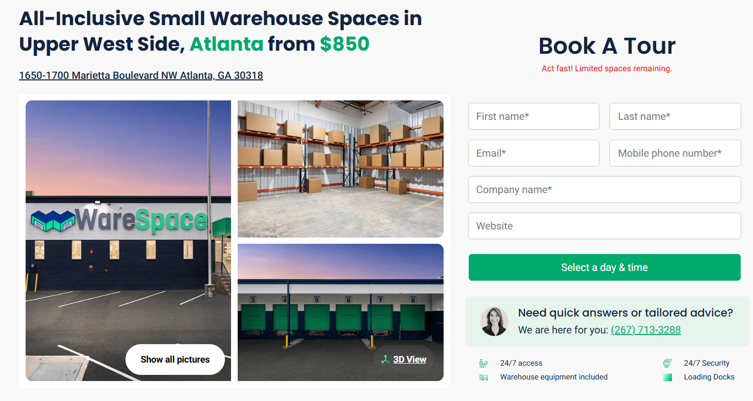 WareSpace provides all-inclusive small warehouse units from 200-2,000 sq. ft. for storage, fulfillment, and light operations, which I think is ideal for e-commerce or contractors looking to scale their ecommerce operations.