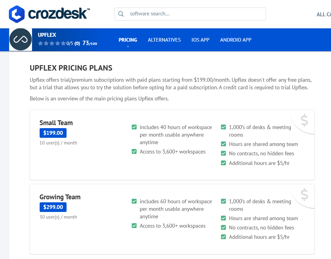 According to Crozdesk, there are 2 main pricing plans that Upflex offers: