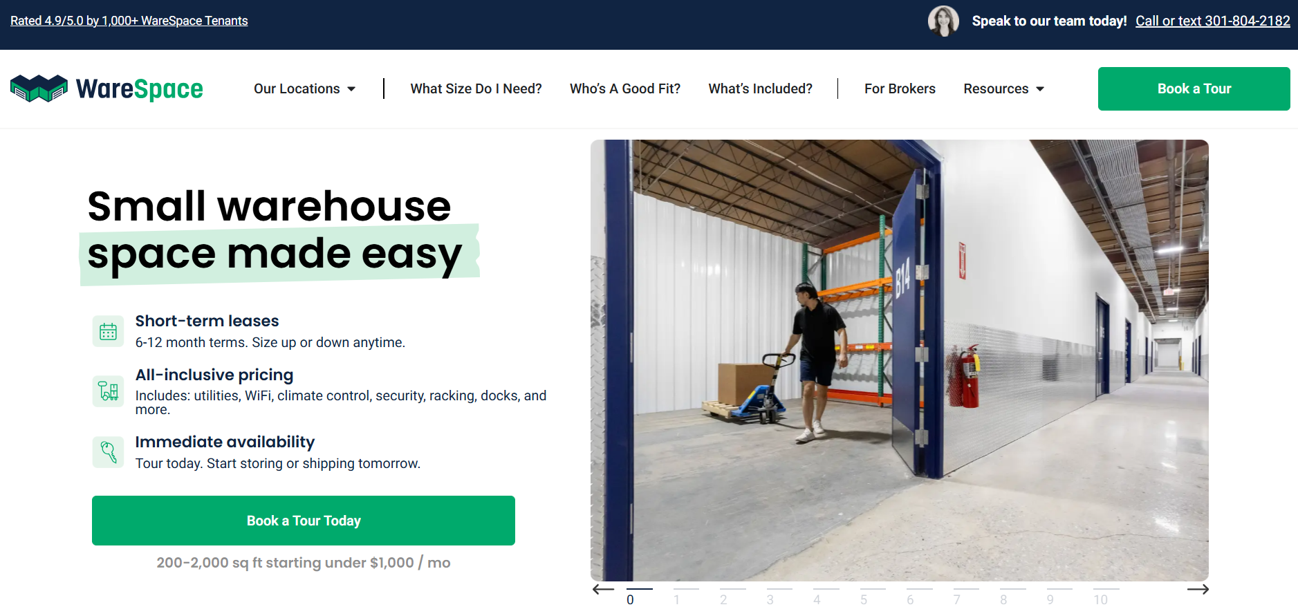 ✅ Warehouse pods from $199/month with climate control and a staffed loading dock.