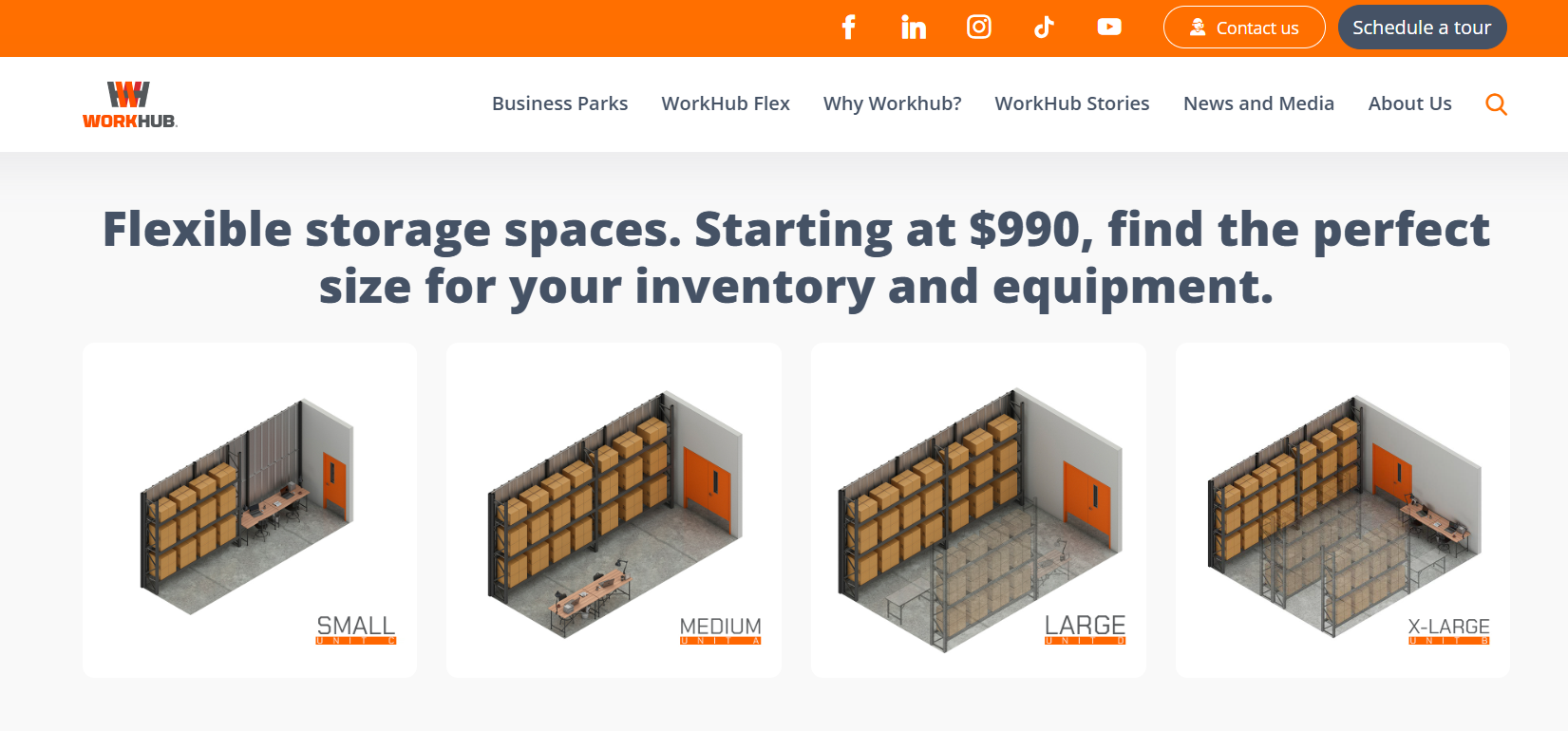 Whether you're packing 50 orders a week from your garage or managing a growing team with hundreds of SKUs, Saltbox has warehouse suites and offices that range from 70 to 5,000+ sq. ft.