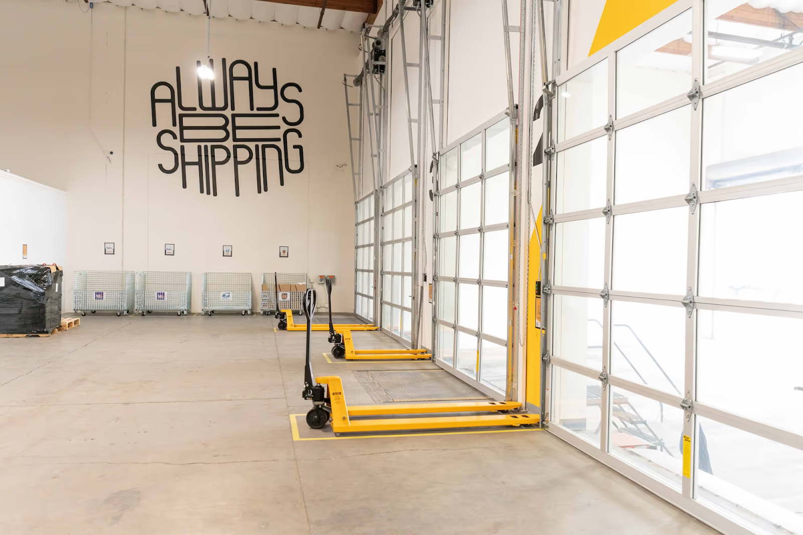 - Loading docks with pallet jacks, daily carrier pickups, and on-site staff for shipping and receiving.