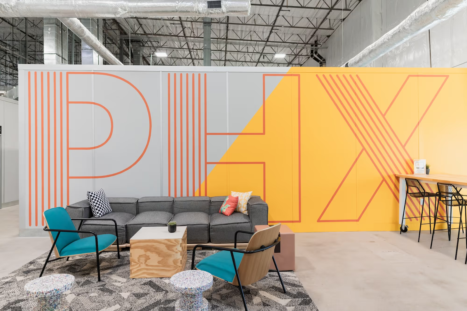 - Warehouse and office suites, conference rooms with custom murals, and a community lounge with the signature Park Hill wall art.