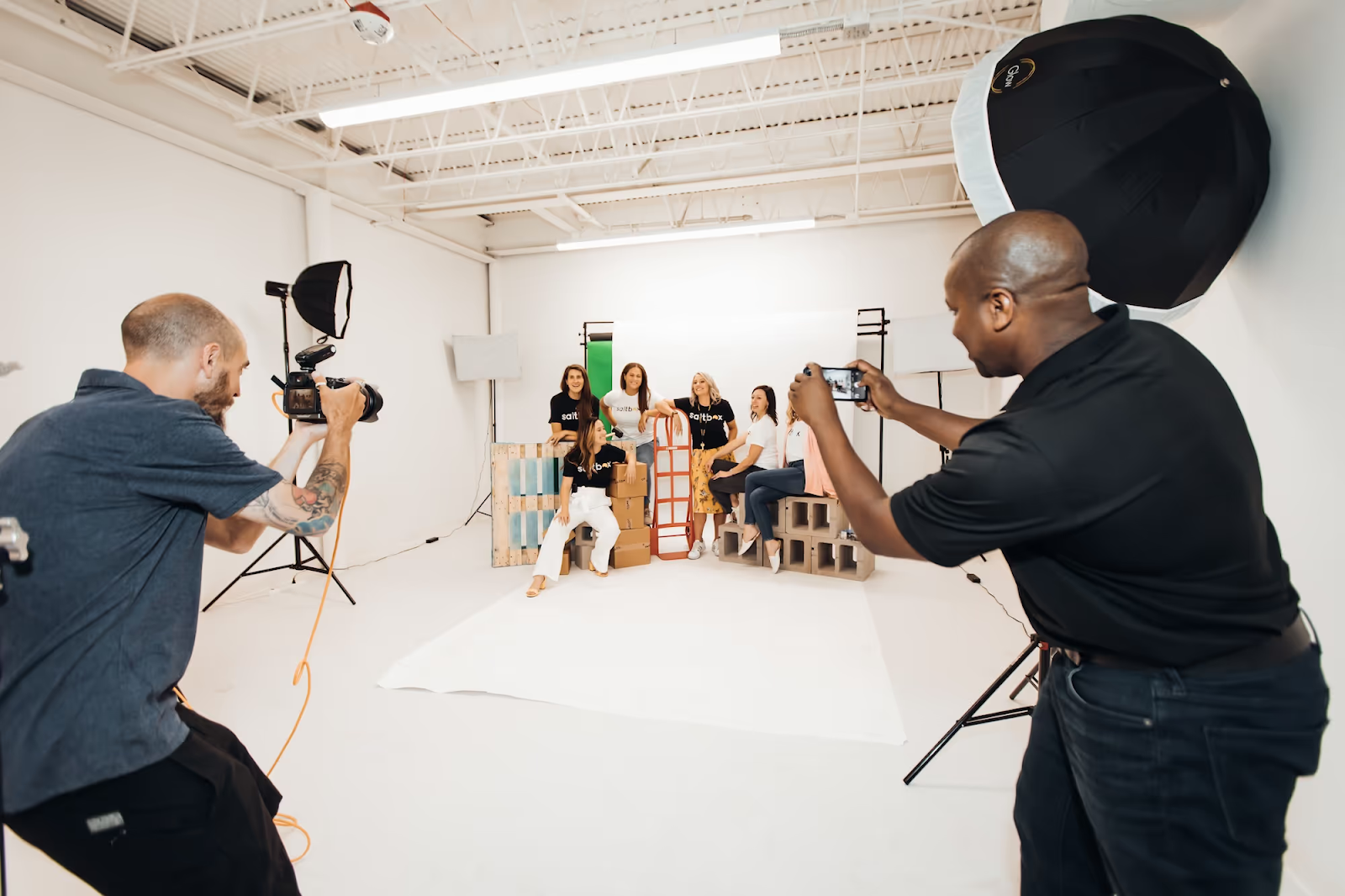 - Warehouse and office suites, plus a content studio with photography equipment and backdrops.